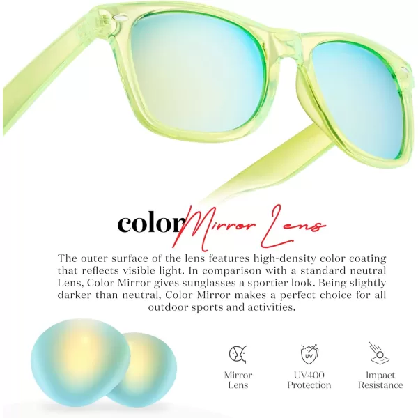 Retro Rewind Translucent Frame Colorful Neon 80s Mirrored Sunglasses for Men Women(Translucent Lime | Gold Mirror Lens)